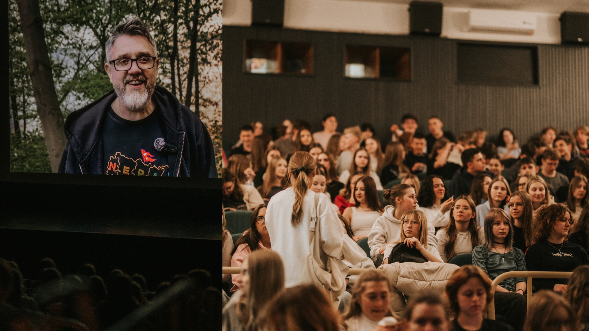 Dziękujemy II Liceum Ogólnokształcącemu za tak liczne przybycie! Zanim popłynęliśmy w dalekie oceany z filmem „Pieśni wielorybów”… przywitał nas znajomy głos.