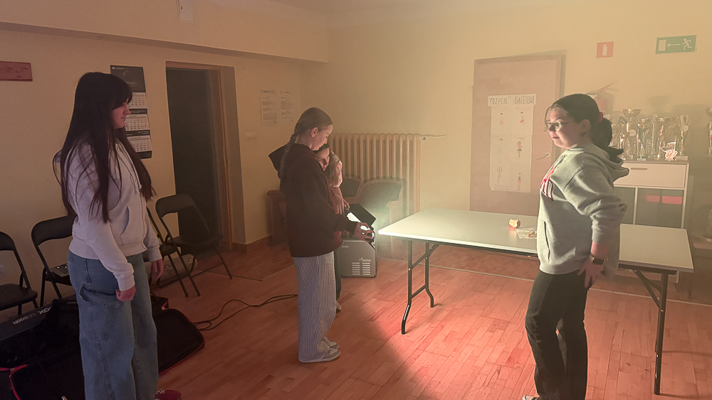 Na planie pojawiły się światła, dymiarka, sceny akcji, dramaty i ekologiczne misje specjalne. Dzięki prostym trikom zmienialiśmy zwyczajne sale w mroczne tajemnicze wnętrza, a park w centrum Nowogardu zamienił się w zieloną scenografię kina przygodowego